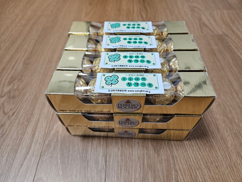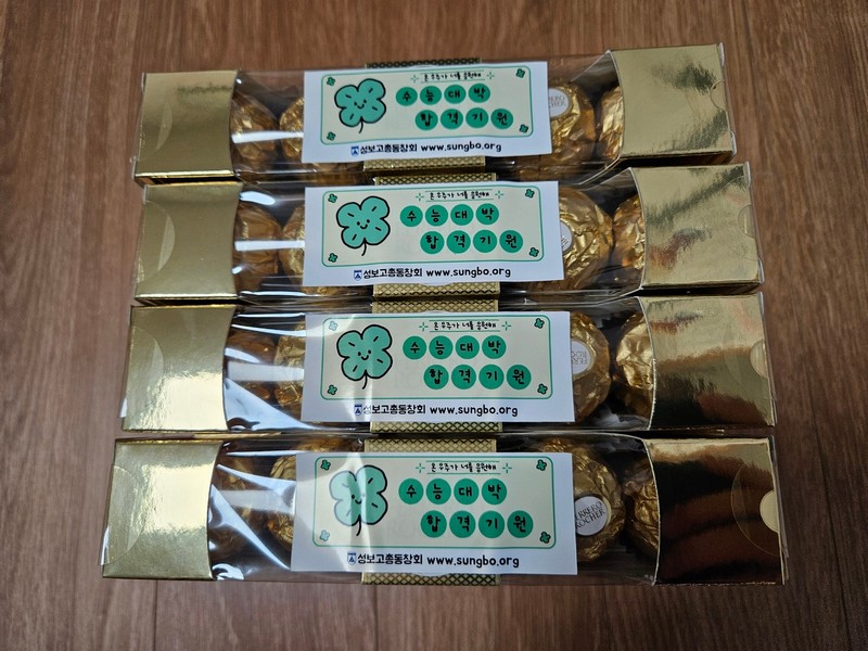 3. 모교 재학생 대상 수능격려활동 펼쳐 총동창회는 지난 11월 13일(목) 2026학년도 대학수학능력시험을 치른 모교 3학년 재학생 후배들을 위해 수능격려활동을 펼쳤습니다. 모교 3학년 재학생과 이들을 지도한 선생님 등 총 320명에게 수능 격려품으로 페레로 로쉐 초콜렛(사진)을 드렸습니다.